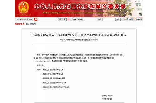 7月12日,中华人民共和国住房和城乡建设部的官网中发布了中华人民共和国住房和城乡建设部公告第1610号《住房城乡建设部关于核准2017年度第七批建设工程企业资质资格名单的公告》,福建紫金监理咨询有限公...