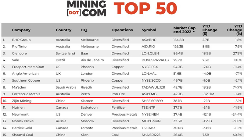 紫金矿业入选“2022福布斯中国可持续发展工业企业TOP50”