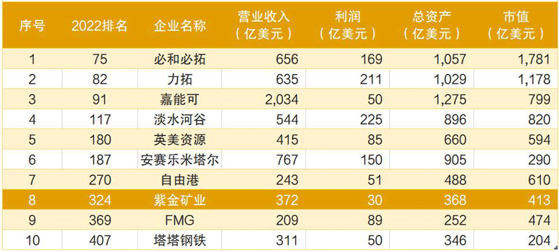 紫金矿业2021年营收位居全球有色矿企第6位