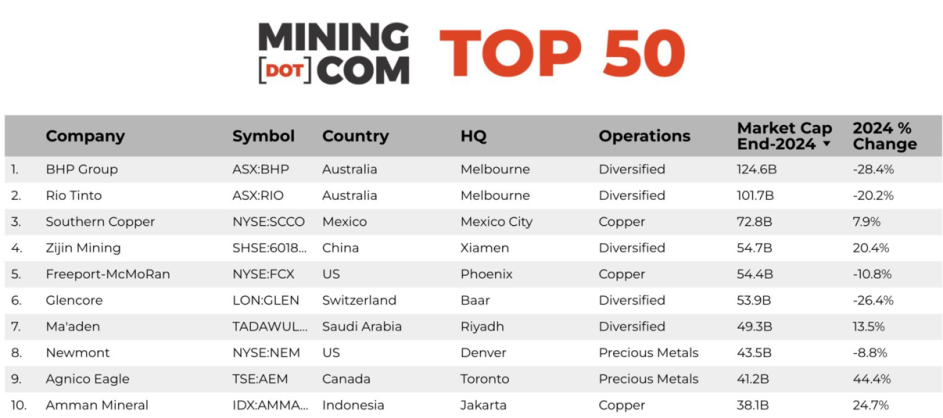 再晋级!紫金矿业进入《福布斯》全球上市企业2000强金属矿企第4位