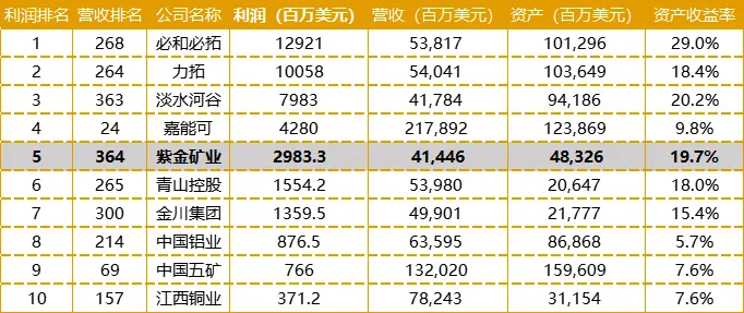 紫金矿业进位至《财富》世界500强364位 利润居全球金属矿企第5位