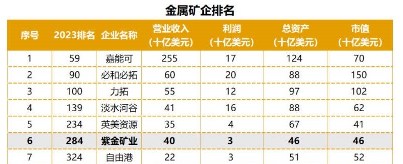 紫金矿业市值位列全球矿企50强第七位