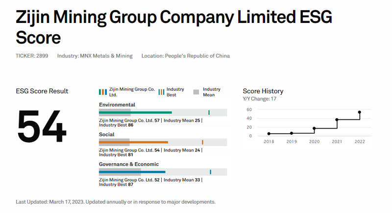 紫金矿业入选标普全球首期《可持续发展年鉴(中国版)》