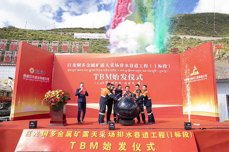 巨龙铜多金属矿露天采场排水巷道工程TBM设备始发仪式