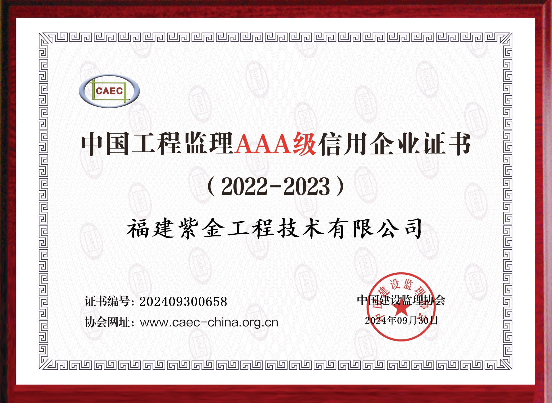 喜报丨紫金工程技术世界杯网上购买平台(China)官方网站获评中国工程监理AAA级信用企业