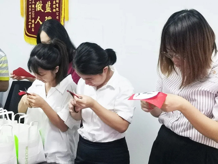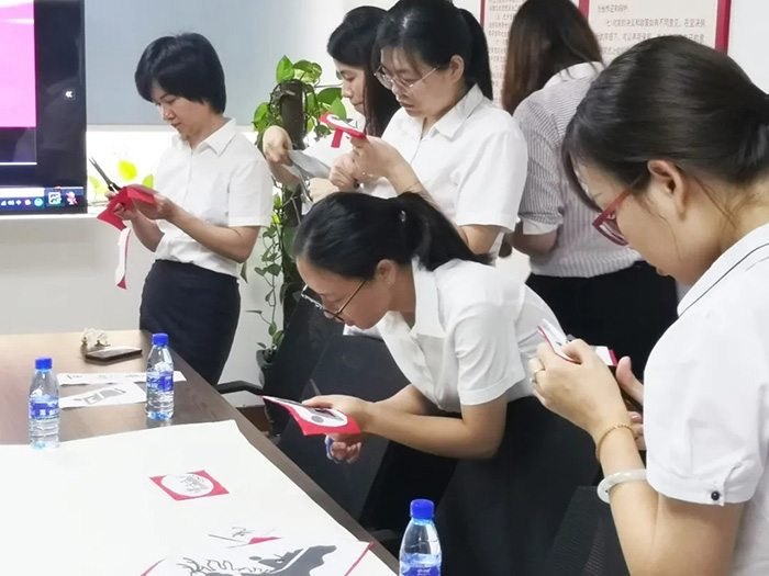 剪纸是我国的艺术瑰宝之一,同样有着渊远的历史。一张普通的彩纸,一把普通的剪刀,可以创造出那一张张惟妙惟肖的艺术品,使人叹为观止。世界杯网上购买平台(China)官方网站的能工巧匠们以端午赛龙舟为主题,用手中的剪刀和彩纸增添一份节日的氛围。听着手中“咔嚓、咔嚓”清脆的剪纸声,不一会儿,一幅鲜活的“百舸争流图”便跃然于纸上,仿佛看见了龙舟在水中遨游,仿佛听见了人们的喝彩和呐喊。